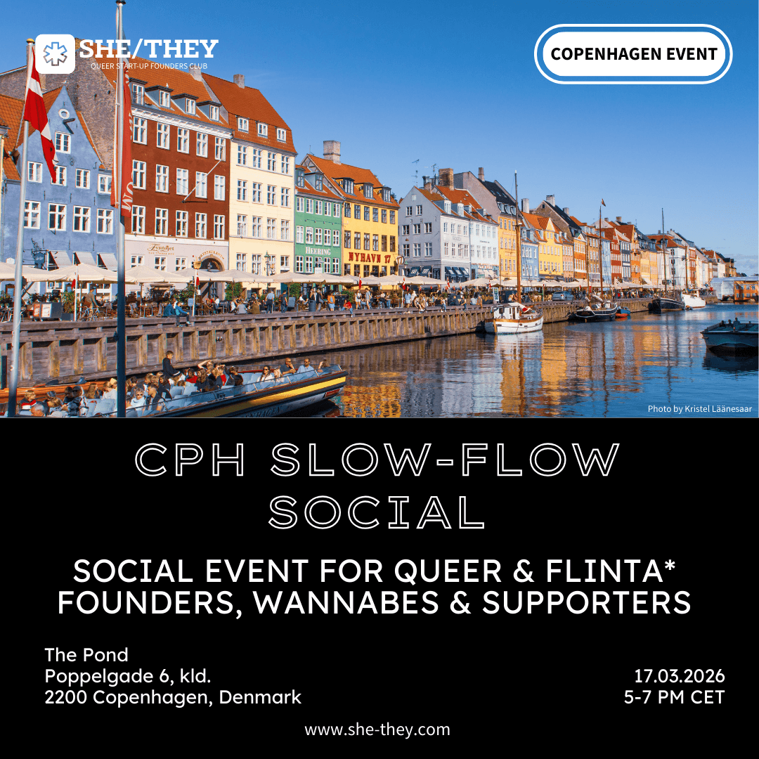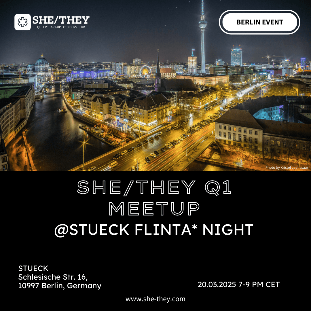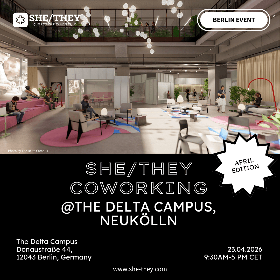 This is why Tinush created – of course with Gabi's and Letizia's support – the SHE/THEY Club, which is a safer space for queer women* and non-binary folks who are founders or are on their way to become one. Jil joined Tinush in 2024 and all the others afterwards. This club is all about empowerment, not division.