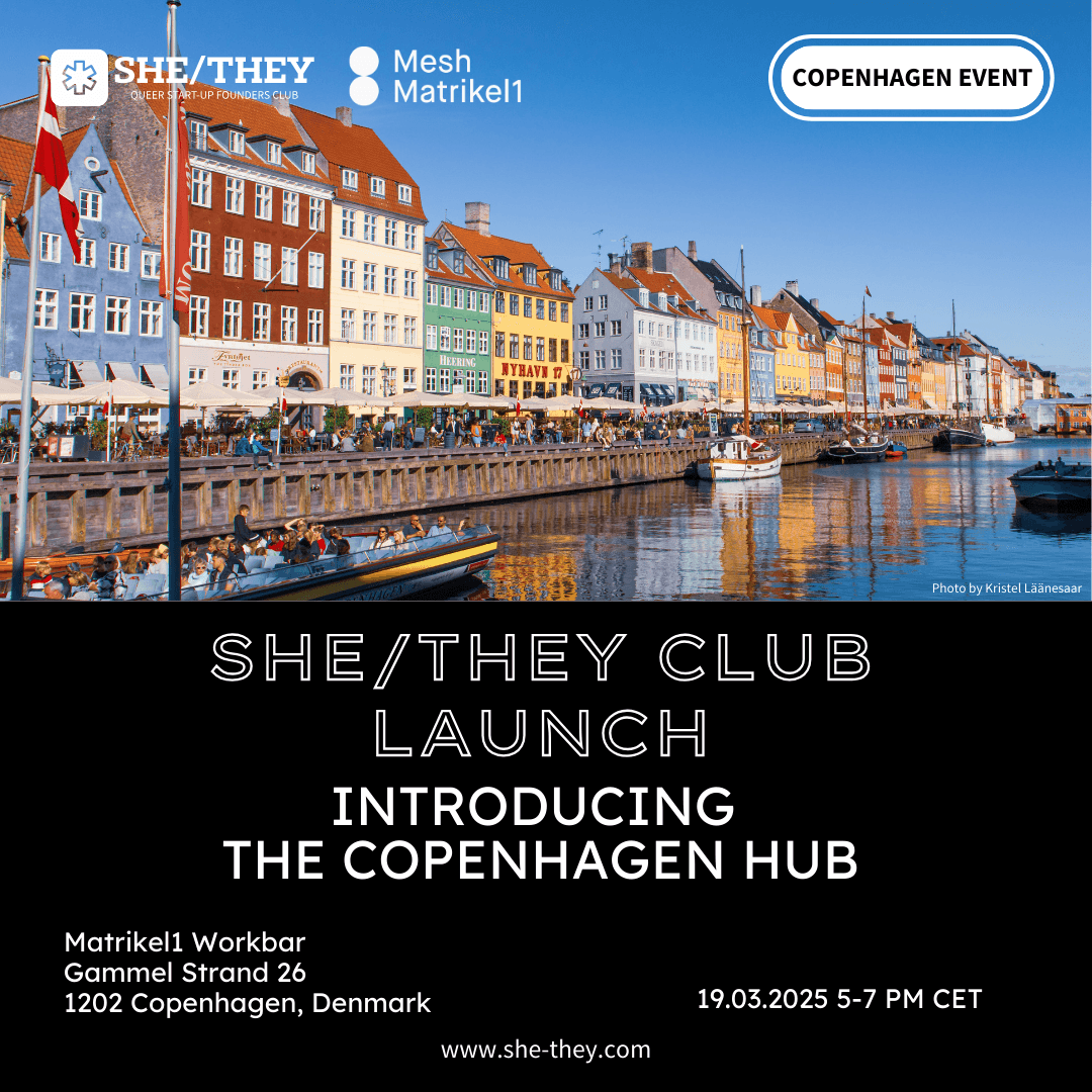 Join us for the launch of She/They CPH Hub, a new gathering point for queer founders and allies in Copenhagen, kindly hosted by Matrikel1 Workbar at Gammel strand.